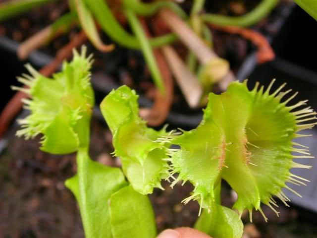 La atrapamoscas es una pequeña planta cuya estructura está formada por una roseta de 4 a 7 hojas que surgen de un corto tallo subterráneo de forma bulbosa. Cada tallo alcanza una altura máxima de entre 3 a 10 cm, dependiendo de la época del año,2 las hojas más largas con trampas robustas se forman normalmente después de la floración. Las plantas que tienen más de 7 hojas son colonias formadas por rosetas que se han dividido subterráneamente.